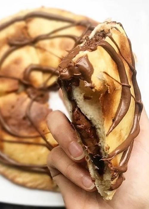 Hazelnut Chocolate Stuffed Naan Served with Vanilla Cream Dipper