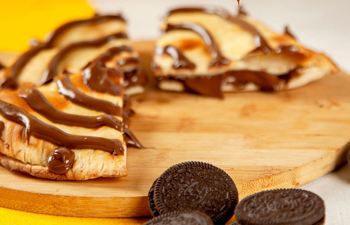 Hazelnut Chocolate and Crushed Oreo Stuffed Naan Served with Vanilla Cream Dipper